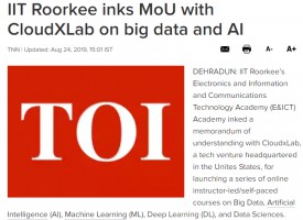 IIT Roorkee’s Electronics and Information and Communications Technology Academy (E&ICT) Academy inked a memorandum of understanding with CloudxLab, a tech venture headquartered in the Unites States, for launching a series of online instructor-led/self-paced courses on Big Data, Artificial Intelligence (AI), Machine Learning (ML), Deep Learning (DL), and Data Sciences. Read more