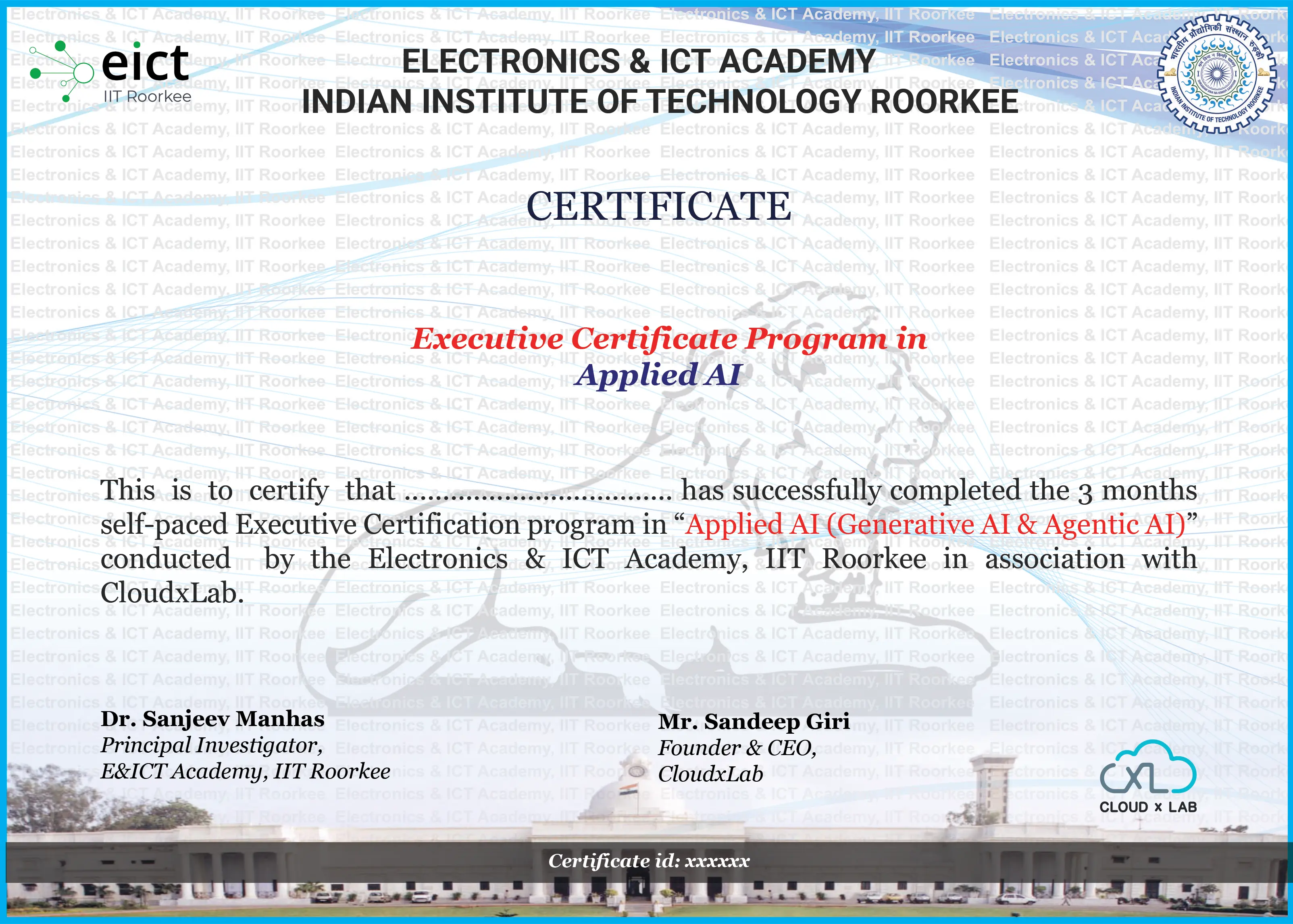 Boost your Data Science, Artificial Intelligence and Machine Learning career with a certificate from EICT- IIT Roorkee. Master in-demand technologies like Machine Learning, Artificial Intelligence, OpenAI’s ChatGPT, Stable Diffusion, Deep Learning, Python, and more with training and hands-on experience in our cloud labs.
